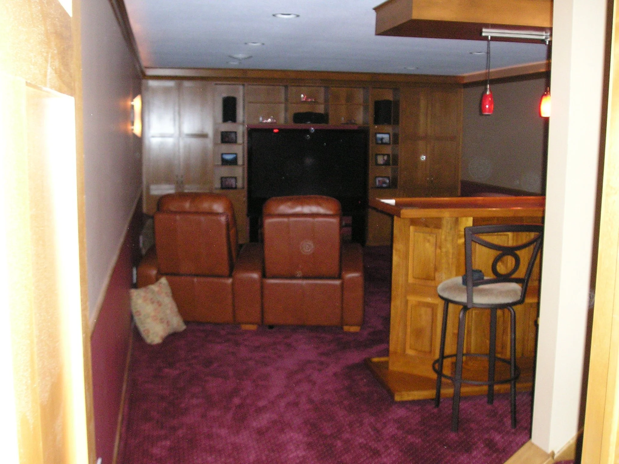 Basement Finish #1 - living room area included custom cabinetry and T&G ceiling