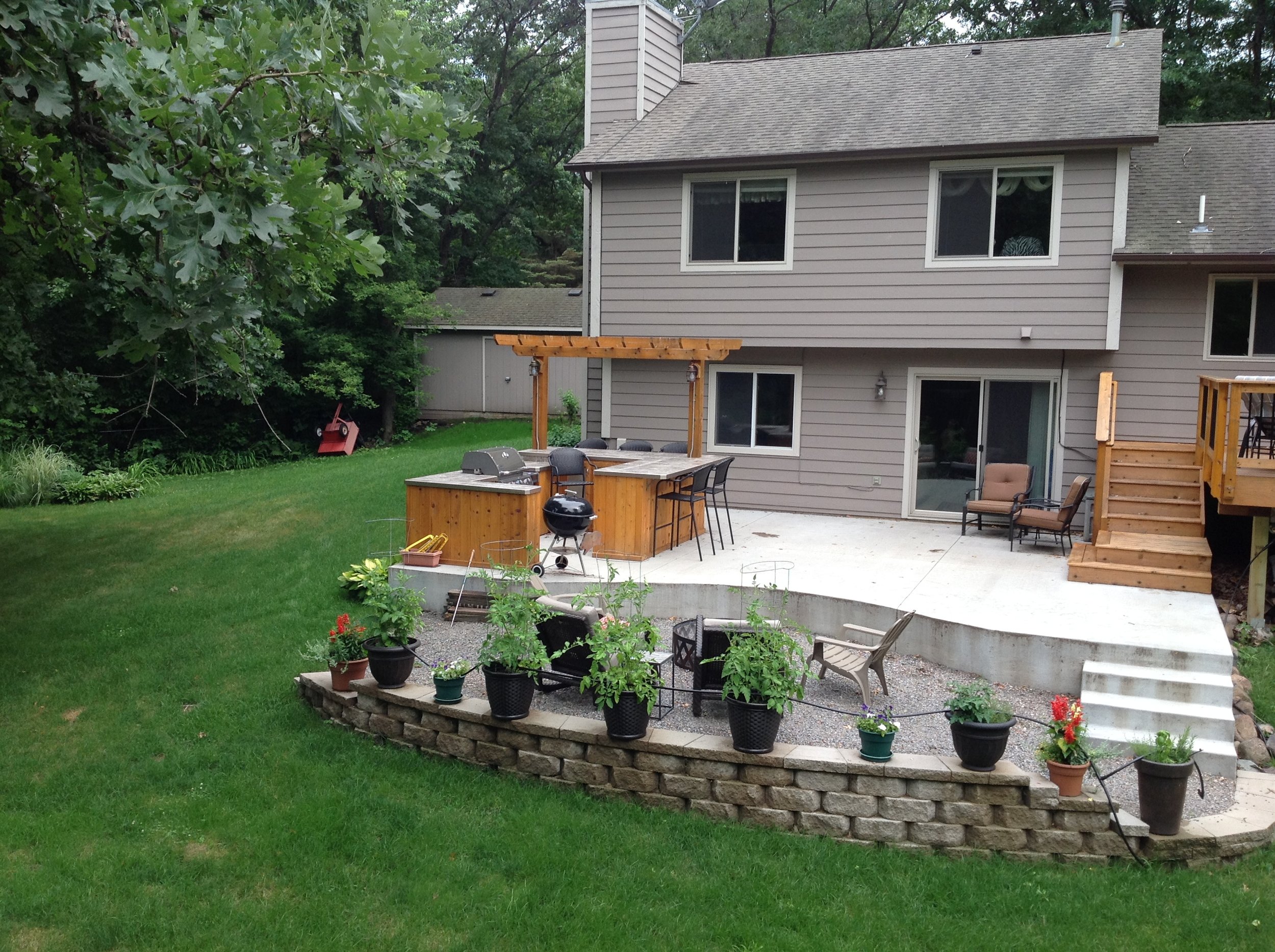 Deck/Porch #3 - After - Added on screen porch, new deck, concrete patio with outdoor kitchen and fireplace sitting area with retaining wall
