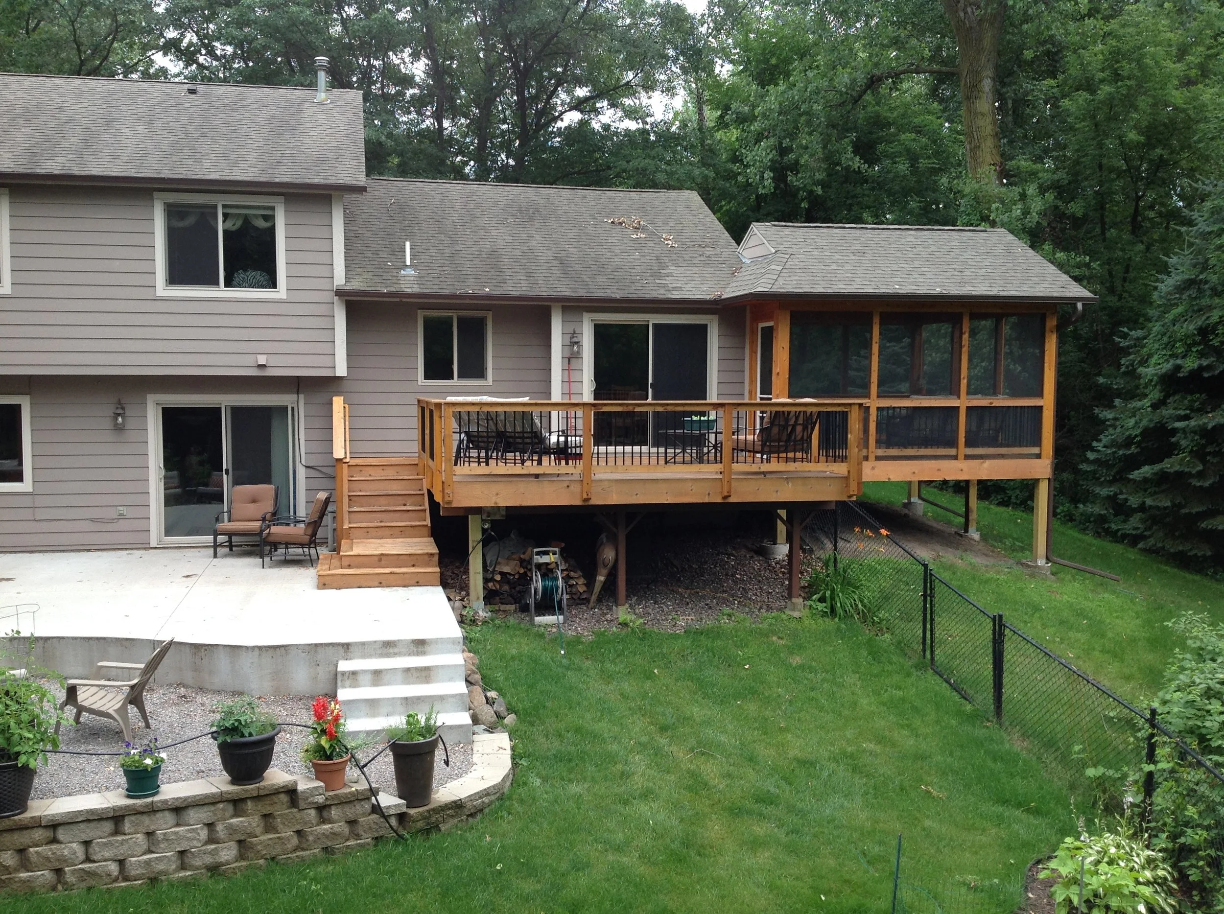 Deck/Porch #1 - After - Added screen porch, deck, and stairs